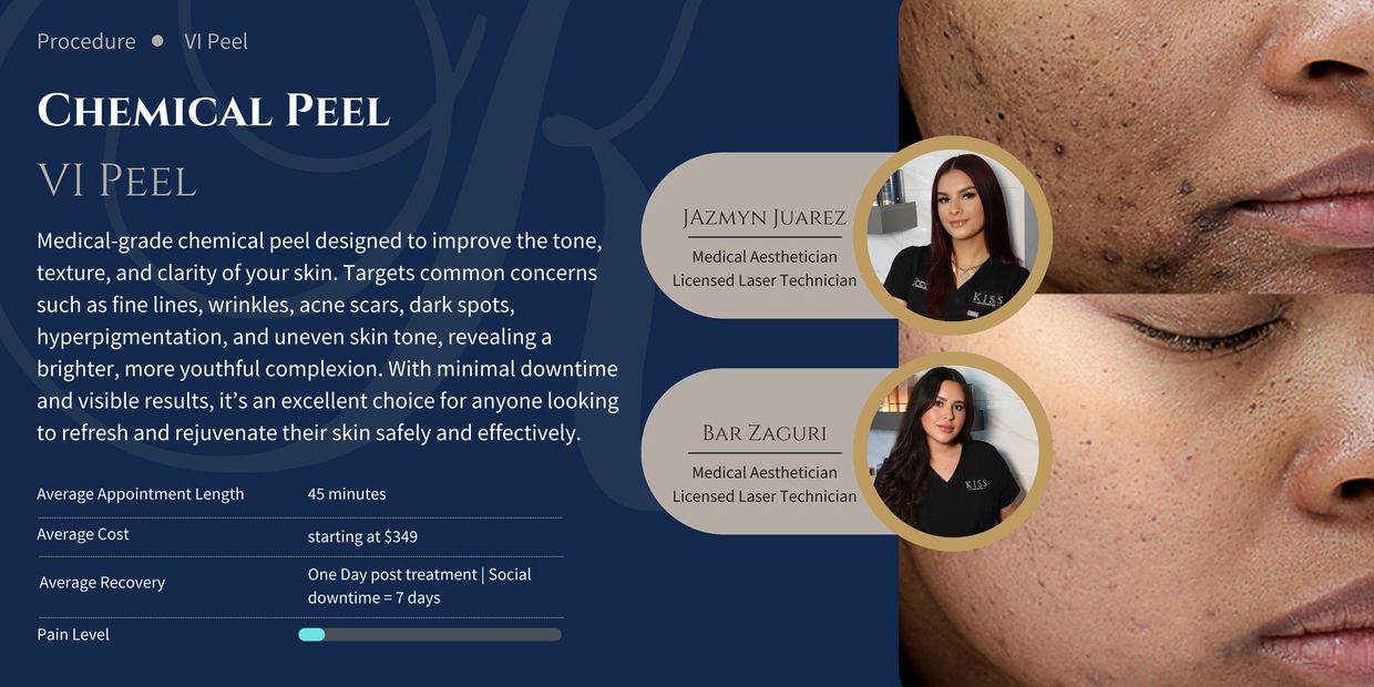 It may not be suitable for individuals with certain skin conditions, open wounds, or active infections in the treatment area. A consultation with your provider is the best way to determine if the VI Peel aligns with your goals and to customize the treatment for your skin’s specific needs.
